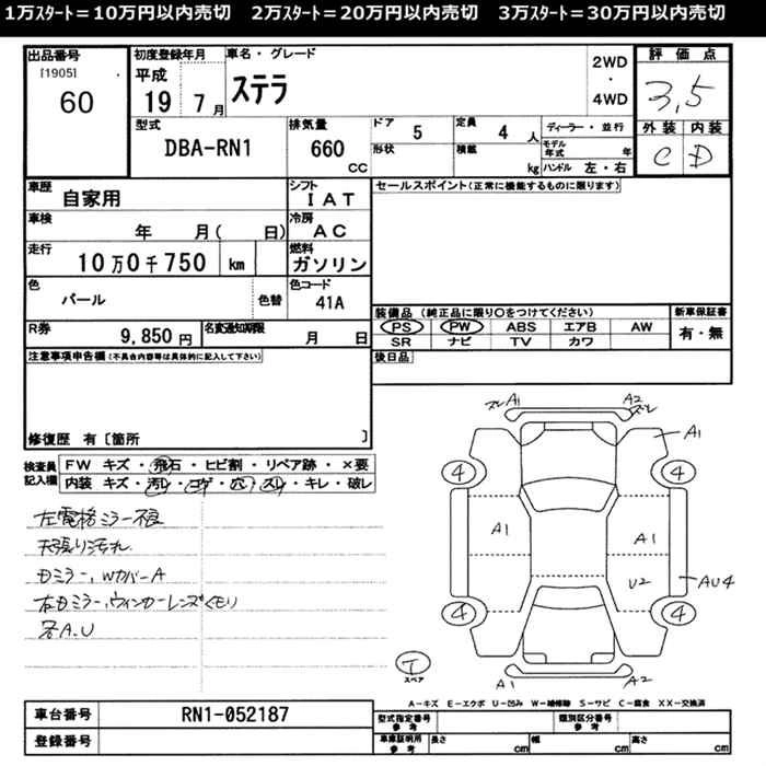 | L SPECIAL | DBA-RN1 | EN07 | FF | CVT | 658cc | 54ps(40kW)/6400rpm | AИ-92 | 920 000 | |