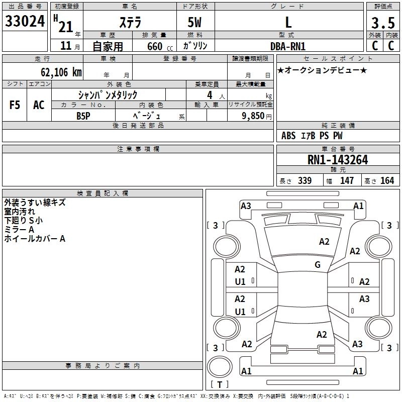 | REVESTA | DBA-RN1 | EN07 | FF | CVT | 658cc | 54ps(40kW)/6400rpm | AИ-92 | 1 264 200 | |