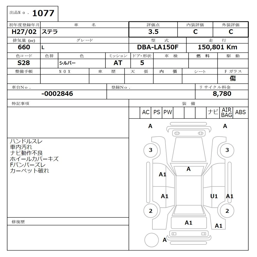W3Ремонт/покраска (очень заментные, должно быть перекрашено)