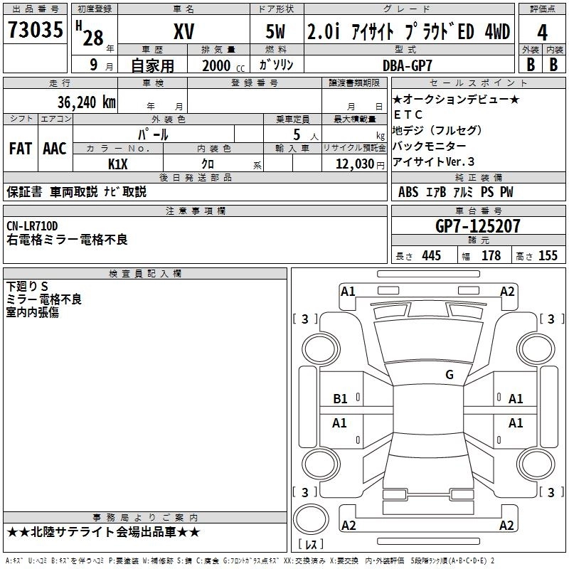 SUBARU SUBARU XV 2016 г., лот № 73035