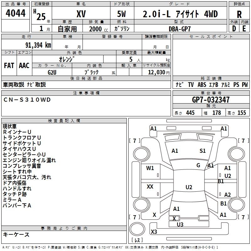 SUBARU SUBARU XV 2013 г., лот № 4044