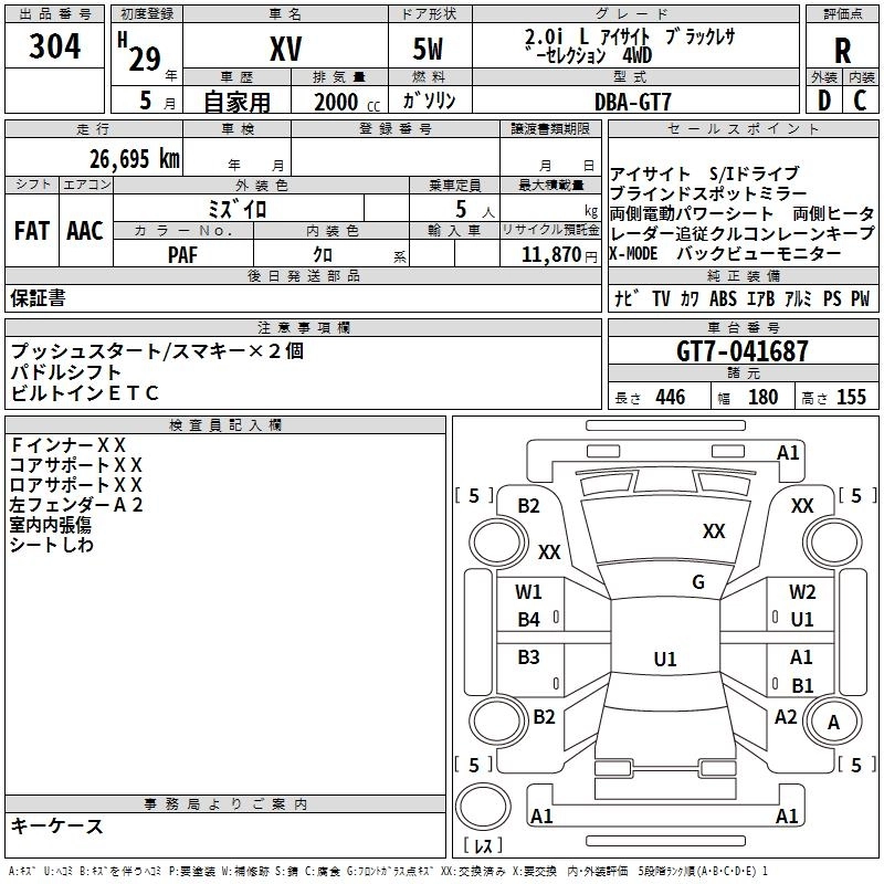 SUBARU SUBARU XV 2017 г., лот № 304