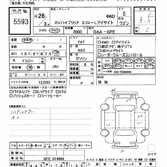 Год выпуска2014 Пробег 166 000 км КузовGPE Комплектация4WD HYBRID 2.0I-L EYESIGHT