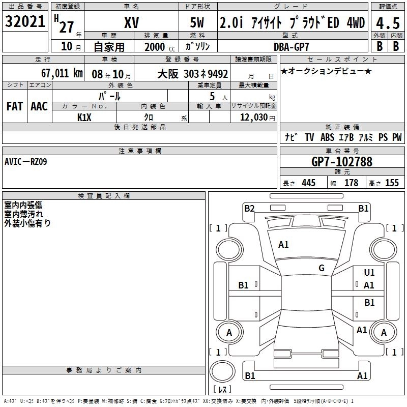 Год выпуска2015 Пробег 67 000 км КузовGP7 Комплектация2.0I EYESIGHT PRA UTO4WD