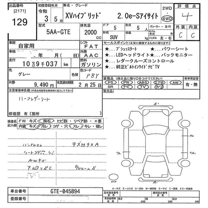 Год выпуска2021 Пробег 109 000 км КузовGTE Комплектация2.0E-S EYESIGHT