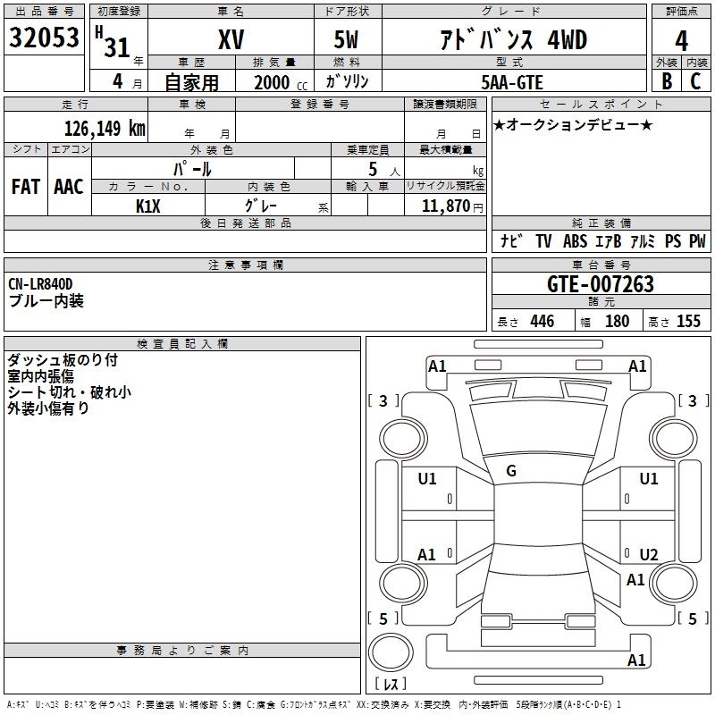 SUBARU SUBARU XV 2019 г., лот № 32053