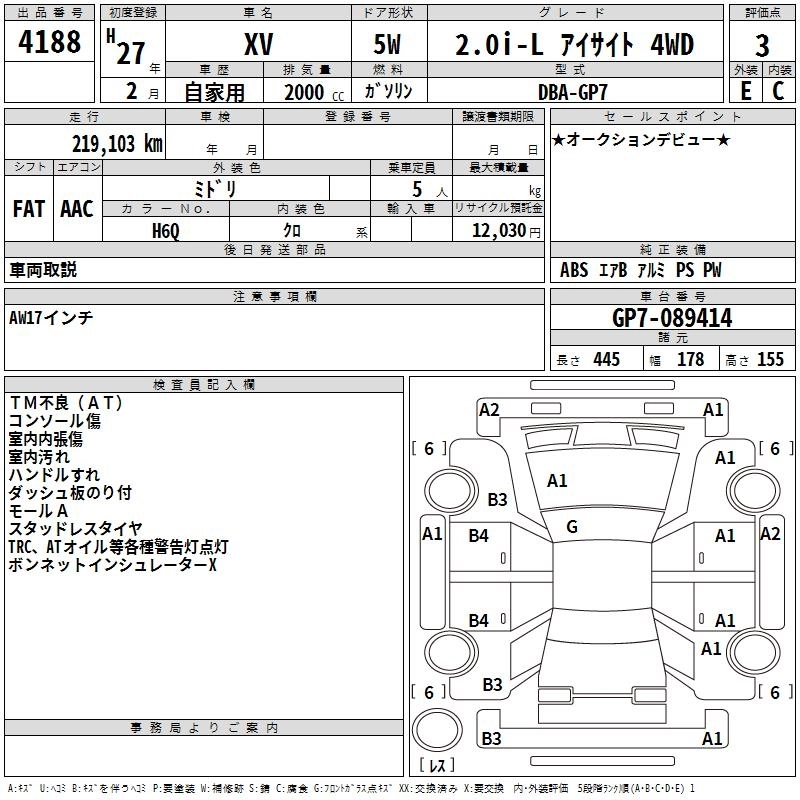SUBARU SUBARU XV 2015 г., лот № 4188