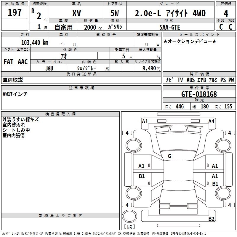 SUBARU SUBARU XV 2020 г., лот № 197