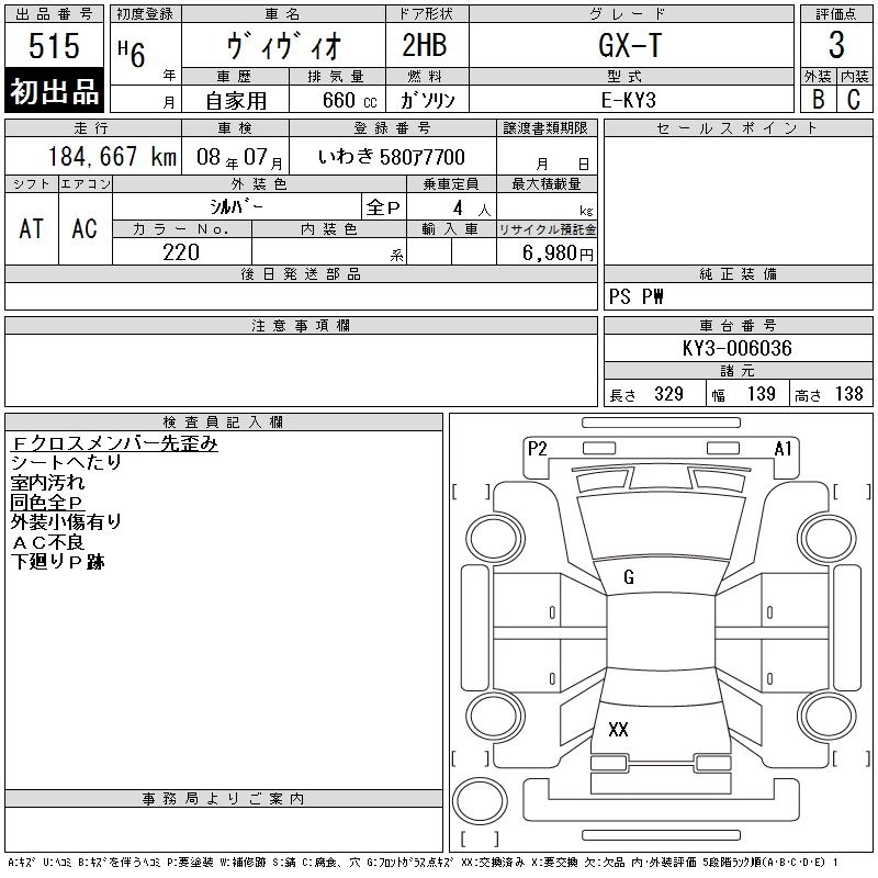 | E | V-KW3 | EN07 | FF | 5MT | 658cc | 42ps(31kW)/7000rpm | AИ-92 | 555 000 | |