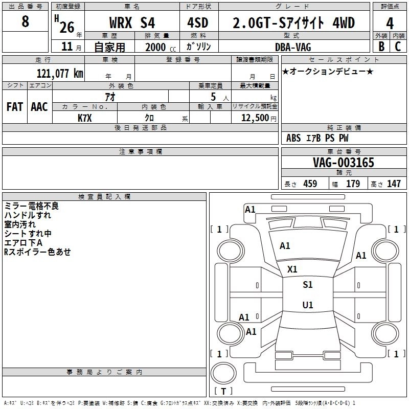 | 2.0GT-S EYE SIGHT | DBA-VAG | FA20 | Full-time 4WD | CVT | 1998cc | 300ps(221kW)/5600rpm | AИ-95 | 3 564 000 | |