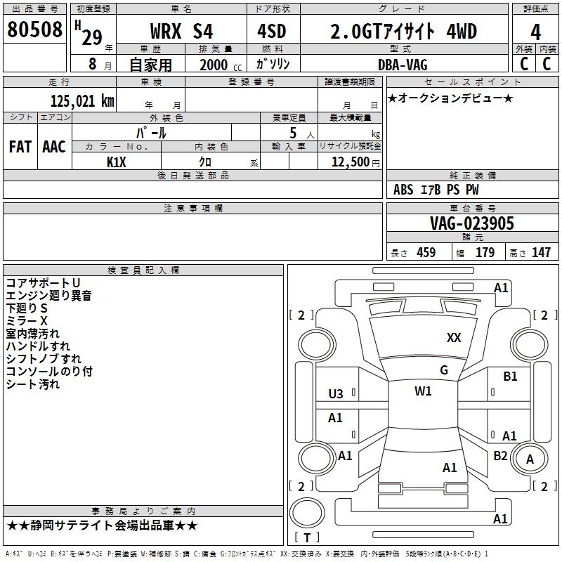 | 2.0GT-S EYE SIGHT | DBA-VAG | FA20 | Full-time 4WD | CVT | 1998cc | 300ps(221kW)/5600rpm | AИ-95 | 3 736 800 | |