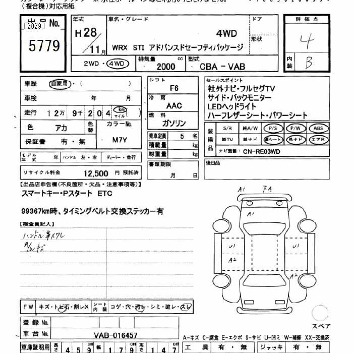 | STI | CBA-VAB | EJ20 | Full-time 4WD | 6MT | 1994cc | 308ps(227kW)/6400rpm | AИ-95 | 3 790 800 |