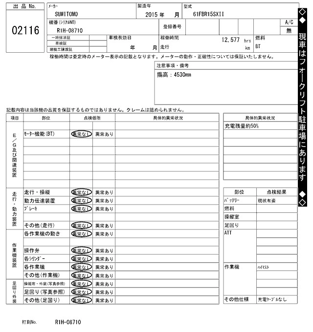 Статус не продан Лот 2116 Аукцион ARAI Kenki Дата аукциона 17.03.2026