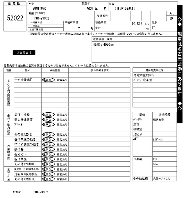 Статус negotiate sold Лот 52022 Аукцион ARAI Kenki Дата аукциона 17.03.2026
