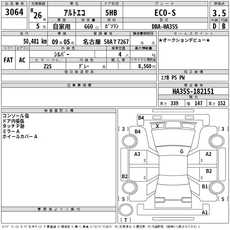 Статус выставлен на аукцион Лот 3064 Аукцион TAA Chubu Дата аукциона 29.01.2026
