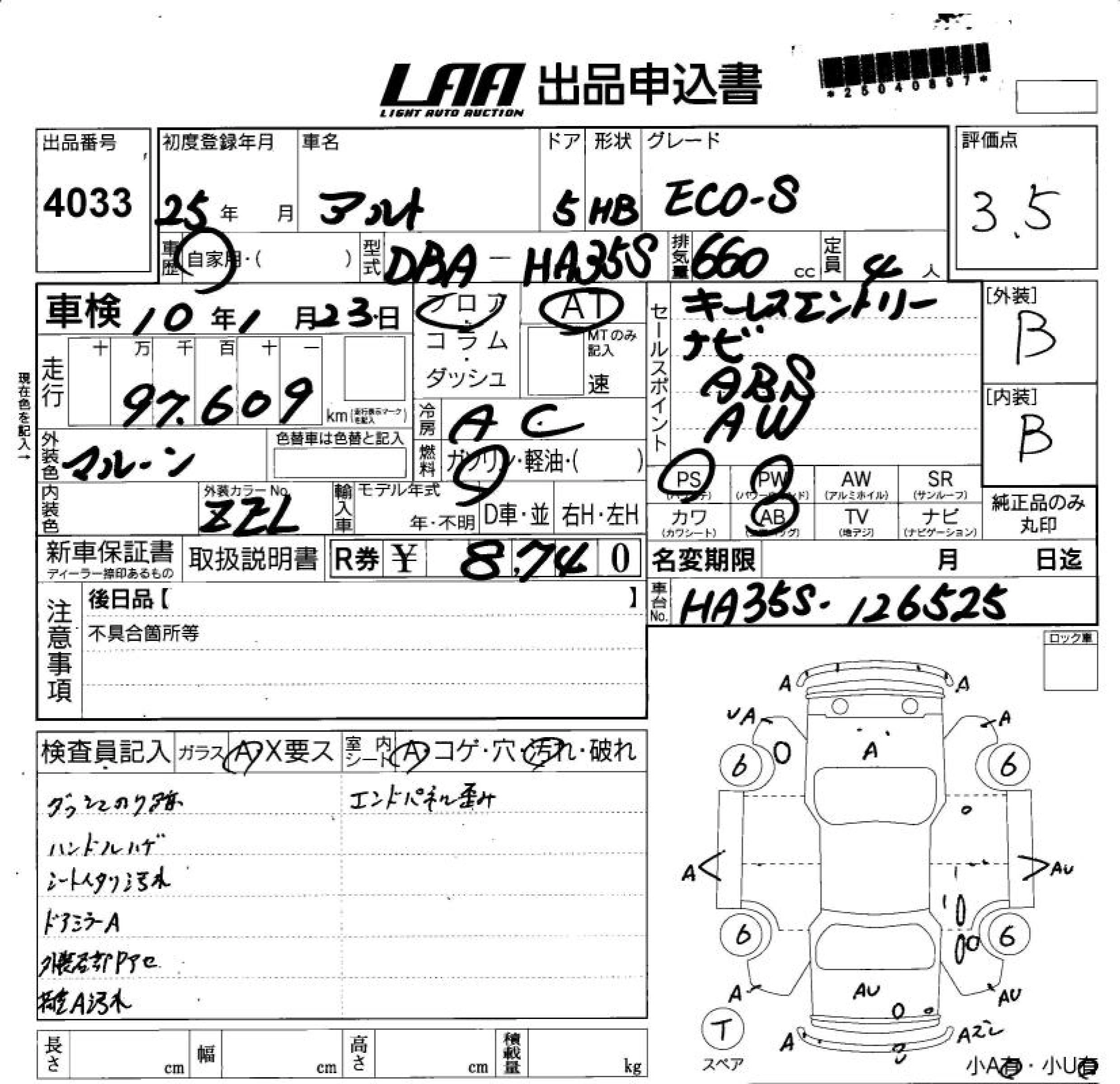 | ECO-L | DBA-HA35S | R06A | Full-time 4WD | CVT | 658cc | 52ps(38kW)/6000rpm | AИ-92 | 938 700 | |
