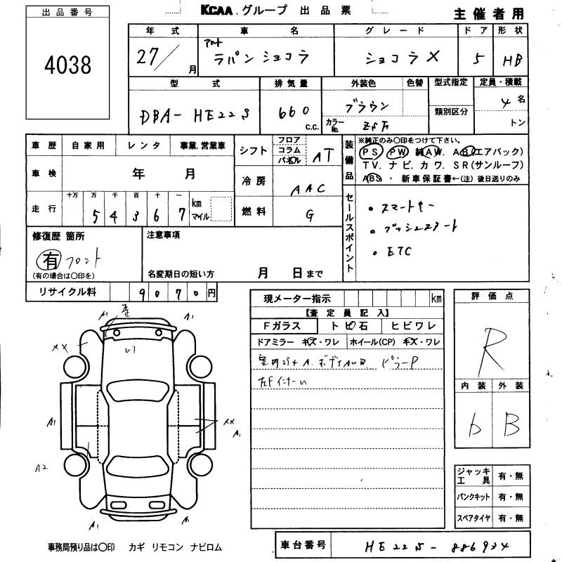 Статус выставлен на аукцион Лот 4038 Аукцион KCAA Fukuoka Дата аукциона 29.01.2026