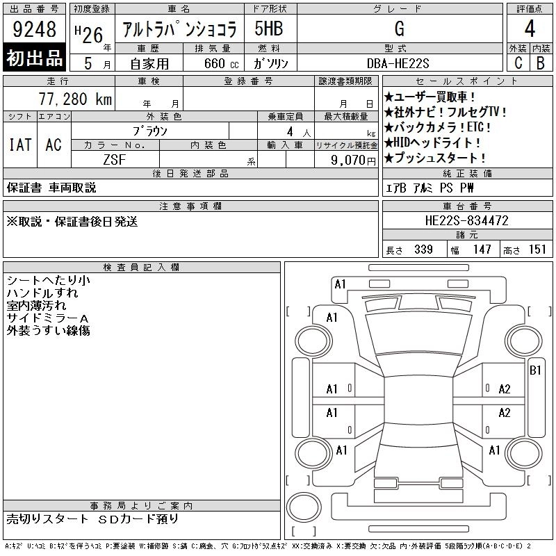 Год выпуска2014 Пробег 77 000 км КузовHE22S КомплектацияG
