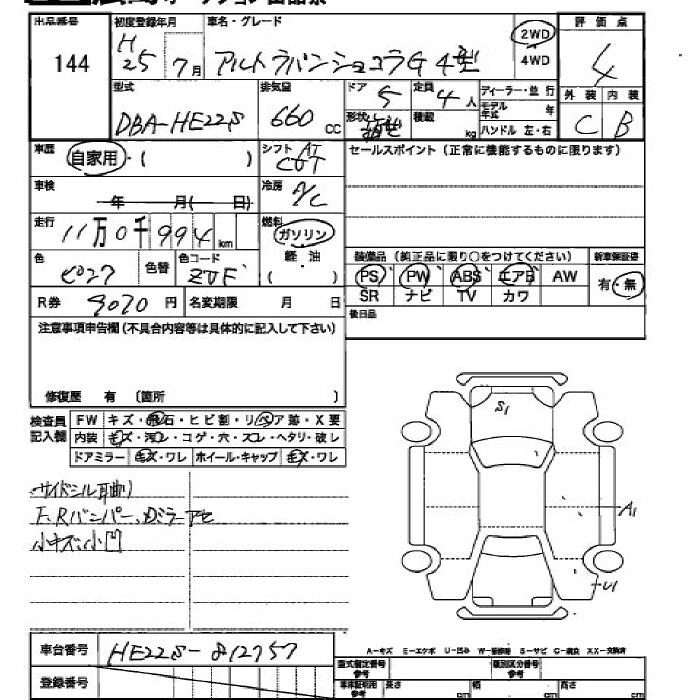 Год выпуска2013 Пробег 110 000 км КузовHE22S КомплектацияG