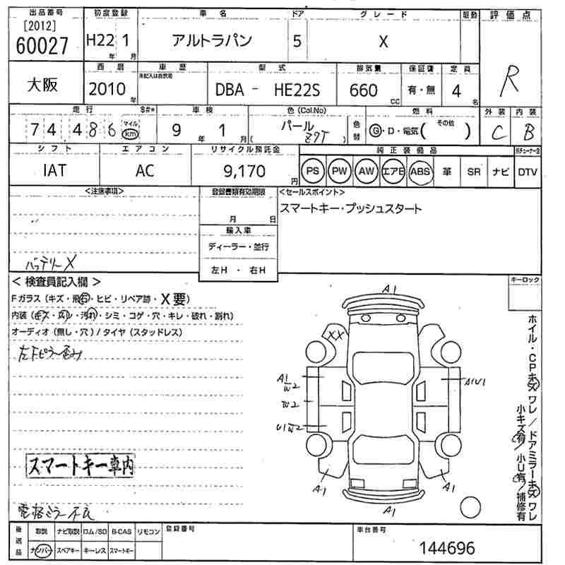 | X | DBA-HE22S | K6A | FF | CVT | 658cc | 54ps(40kW)/6500rpm | AИ-92 | 1 222 200 | |