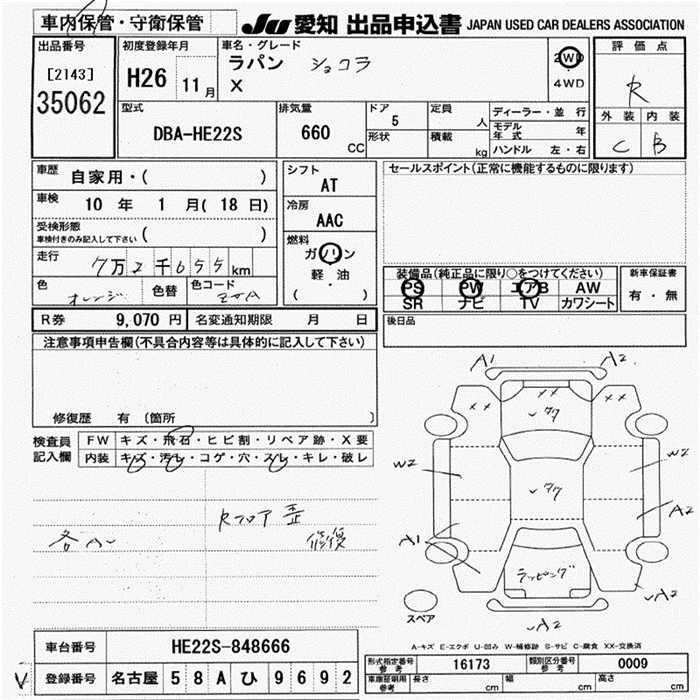 | XL | DBA-HE22S | K6A | FF | CVT | 658cc | 54ps(40kW)/6500rpm | AИ-92 | 1 360 800 | |