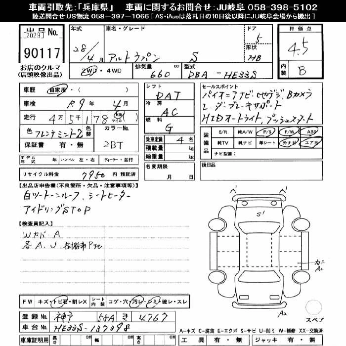 | F LIMITED | DBA-HE33S | R06A | Full-time 4WD | CVT | 658cc | 52ps(38kW)/6500rpm | AИ-92 | 1 501 200 | |