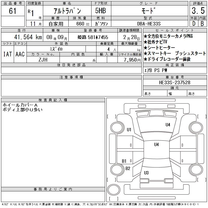 L DBA-HE33S R06A FF CVT 658cc 52ps(38kW)/6500rpm AИ-92 1 227 960