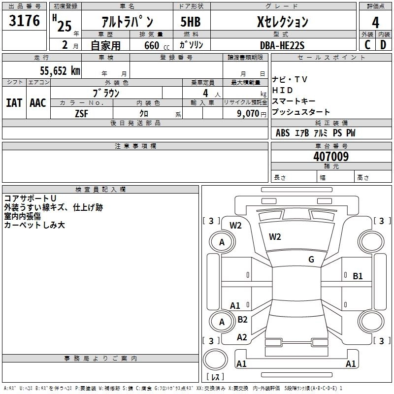 | G | DBA-HE22S | K6A | FF | 4AT | 658cc | 54ps(40kW)/6500rpm | AИ-92 | 1 047 900 |