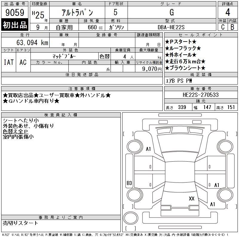 Год выпуска2013 Пробег 63 000 км КузовHE22S КомплектацияG
