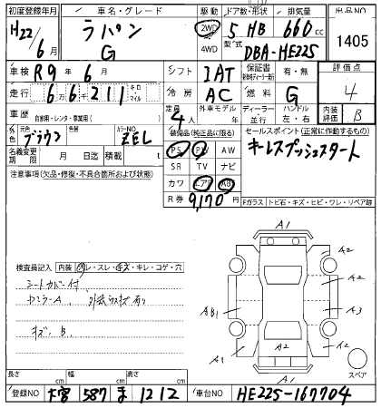 | T L PACKAGE | DBA-HE22S | K6A | FF | CVT | 658cc | 64ps(47kW)/6000rpm | AИ-92 | 1 436 400 | |