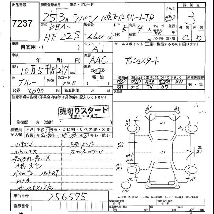 | G | DBA-HE22S | K6A | FF | 4AT | 658cc | 54ps(40kW)/6500rpm | AИ-92 | 1 047 900 |
