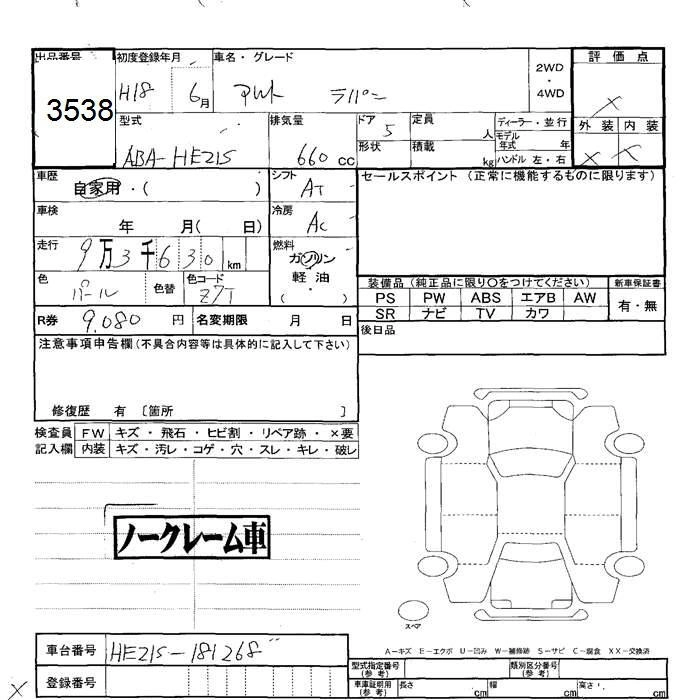 | X | CBA-HE21S | K6A | FF | 4AT | 658cc | 54ps(40kW)/6500rpm | AИ-92 | 1 121 400 |