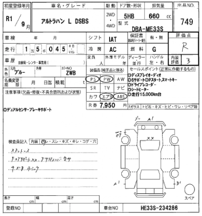 | S | DBA-HE33S | R06A | FF | CVT | 658cc | 52ps(38kW)/6500rpm | AИ-92 | 1 306 800 | |