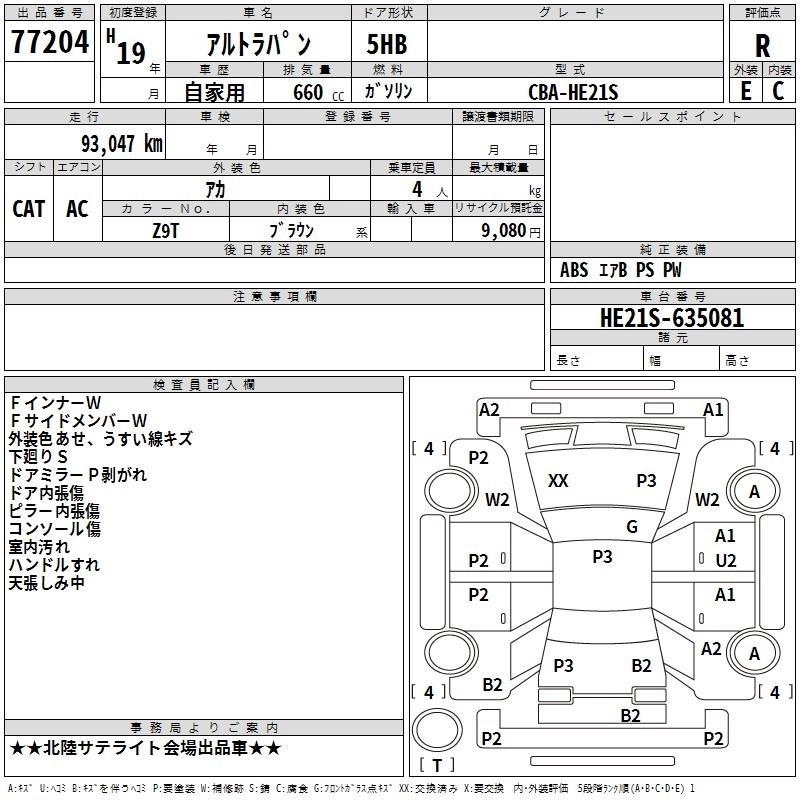 | X | CBA-HE21S | K6A | FF | 4AT | 658cc | 54ps(40kW)/6500rpm | AИ-92 | 1 153 950 | |