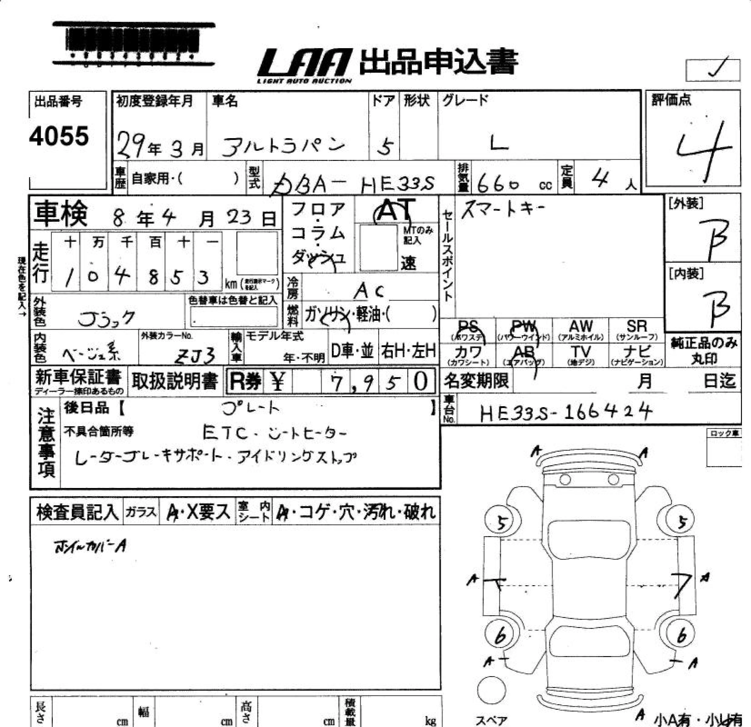 | S SELECTION | DBA-HE33S | R06A | FF | CVT | 658cc | 52ps(38kW)/6500rpm | AИ-92 | 1 333 800 |