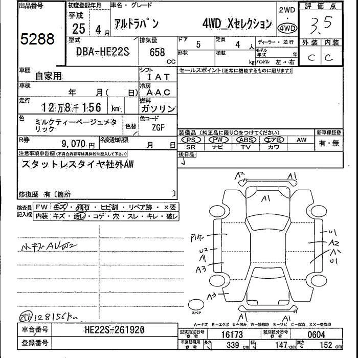 Год выпуска2013 Пробег 128 000 км КузовHE22S Комплектация4WD X SELECTION