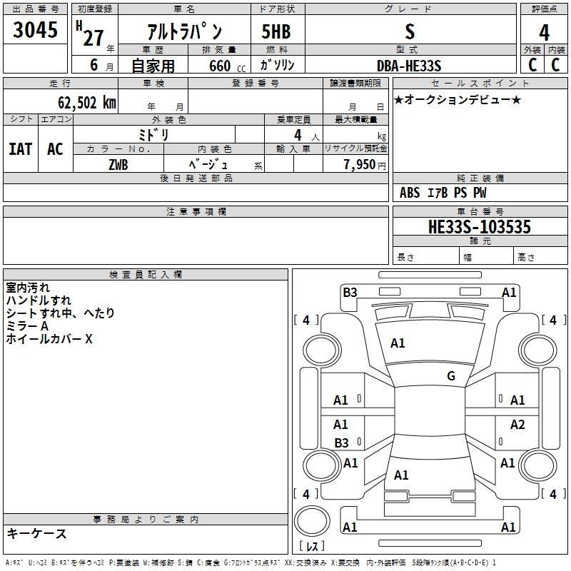| S | DBA-HE33S | R06A | FF | CVT | 658cc | 52ps(38kW)/6500rpm | AИ-92 | 1 404 000 | |