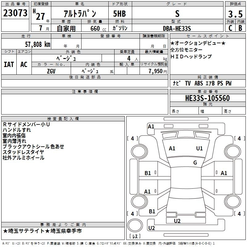 | X | DBA-HE33S | R06A | FF | CVT | 658cc | 52ps(38kW)/6500rpm | AИ-92 | 1 389 960 | |