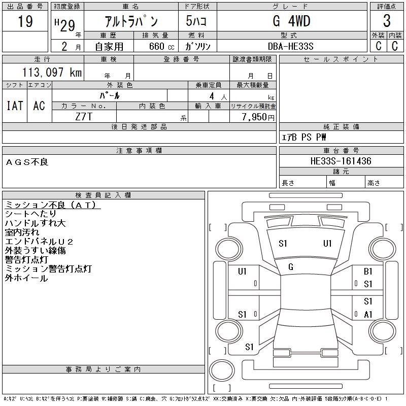 | S SELECTION | DBA-HE33S | R06A | FF | CVT | 658cc | 52ps(38kW)/6500rpm | AИ-92 | 1 333 800 |