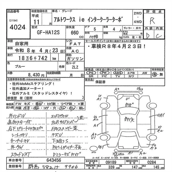 | LIMITED | GF-HA12S | F6A | FF | 3AT | 657cc | 60ps(44kW)/6000rpm | AИ-92 | 1 104 000 | |