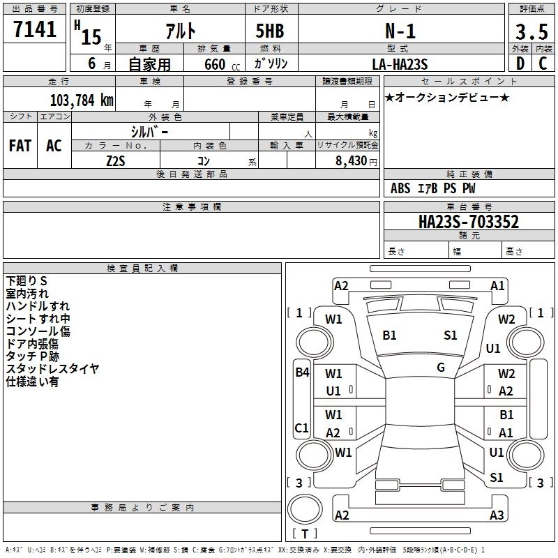| LB SPECIAL | LA-HA23S | K6A | FF | 3AT | 658cc | 54ps(40kW)/6500rpm | AИ-92 | 688 000 | |