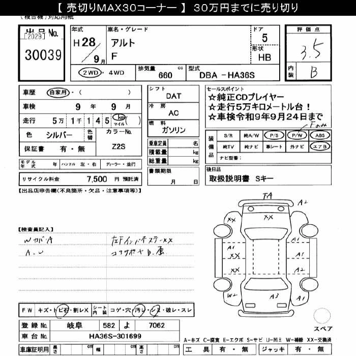 | L | DBA-HA36S | R06A | Full-time 4WD | CVT | 658cc | 52ps(38kW)/6500rpm | AИ-92 | 1 000 080 |