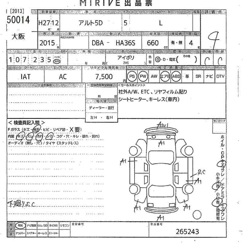 Статус выставлен на аукцион Лот 50014 Аукцион MIRIVE Osaka Дата аукциона 05.02.2026