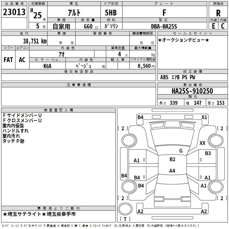 | F | DBA-HA25S | K6A | FF | 4AT | 658cc | 54ps(40kW)/6500rpm | AИ-92 | 808 500 | |