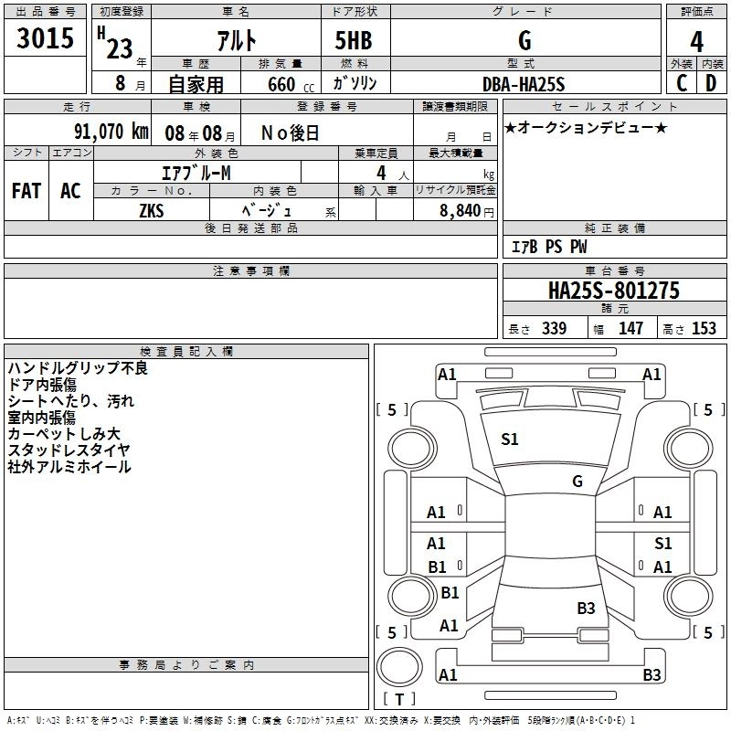 Год выпуска2011 Пробег 91 000 км КузовHA25S КомплектацияG