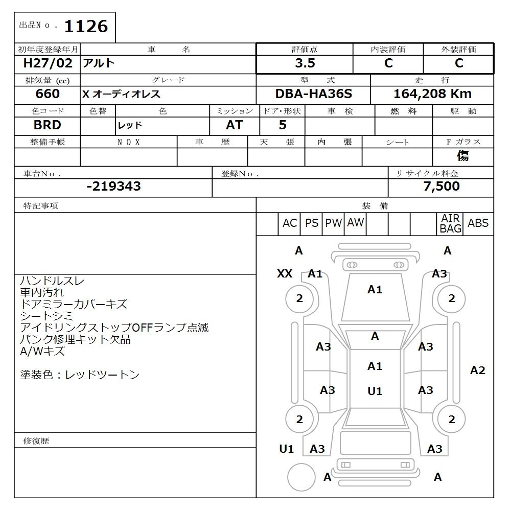 Год выпуска2015 Пробег 164 000 км КузовHA36S КомплектацияX WITHOUT AUDIO