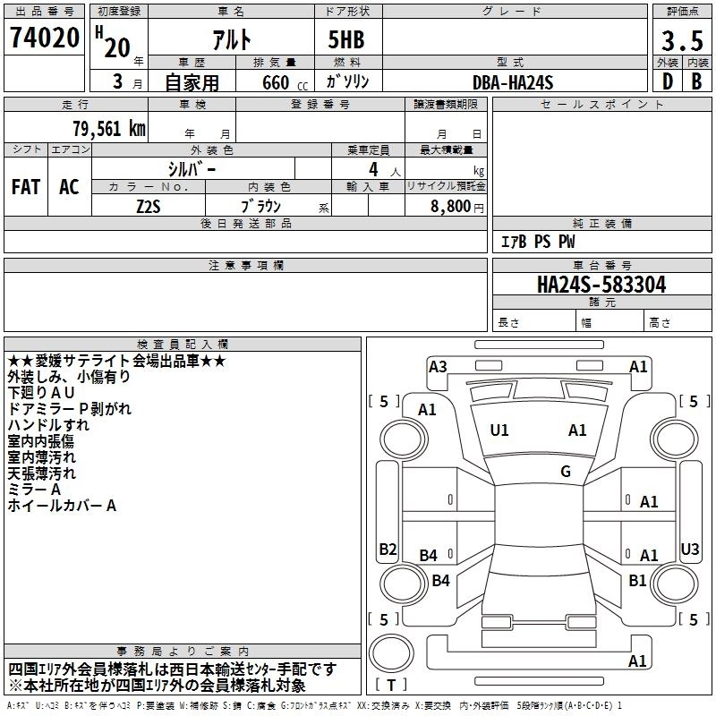 | EII | DBA-HA24S | K6A | FF | 5MT | 658cc | 54ps(40kW)/6500rpm | AИ-92 | 756 000 | |