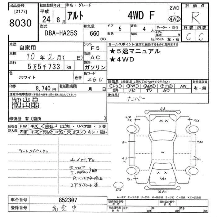 | X | DBA-HA25S | K6A | FF | CVT | 658cc | 54ps(40kW)/6500rpm | AИ-92 | 1 029 000 |