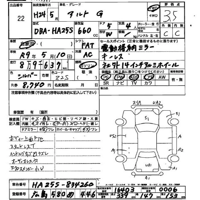 | X | DBA-HA25S | K6A | FF | CVT | 658cc | 54ps(40kW)/6500rpm | AИ-92 | 1 029 000 |