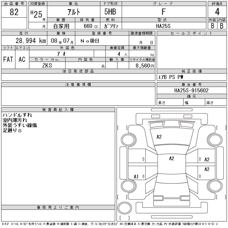 F DBA-HA25S K6A FF 5MT 658cc 54ps(40kW)/6500rpm AИ-92 808 500